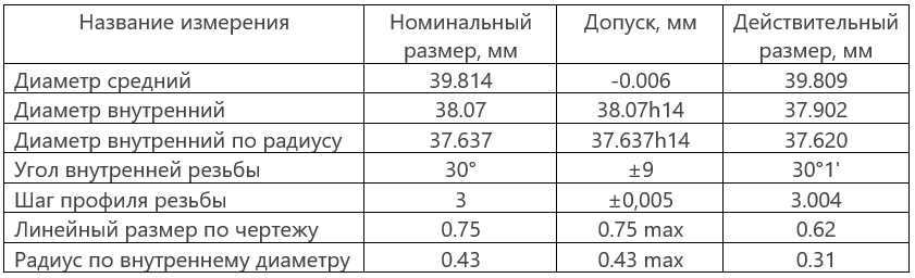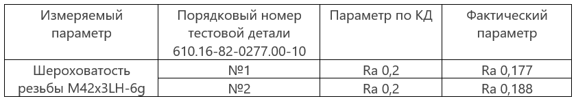 Измерения проведены на двух тестовых деталях. Получены следующие результаты контроля: